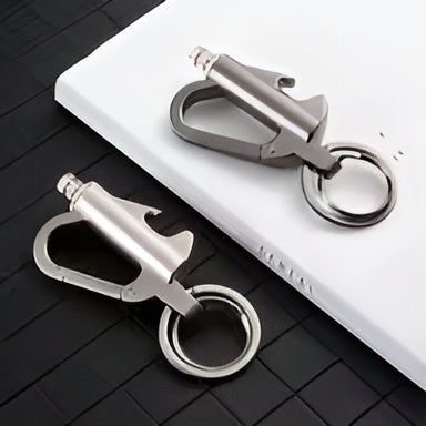 This multifunctional keychain lighter features a sleek, minimalist metal design crafted from durable alloy, giving it a solid, premium feel while staying compact enough to fit effortlessly on any key ring. Built for both everyday carry and outdoor use, it combines a refillable permanent-match style igniter with a reliable flint striker, ensuring consistent performance when you need a quick flame. Its integrated bottle opener adds practical convenience, making it a versatile tool for camping, travel, or daily tasks. With its clean lines, smooth metallic finish, and rugged construction, this keychain lighter delivers a perfect balance of style, durability, and functionality.